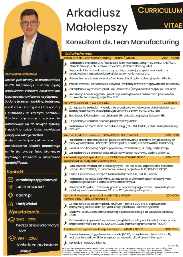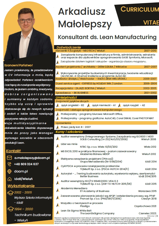 Szukając informacji i nie jako potwierdzenia kompetencji w doam.pl a także zainteresowanych potencjalnych kontrahentów prezentujemy ścieżkę zawodową właściciela firmy doam.pl – Arkadiusza Małolepszego